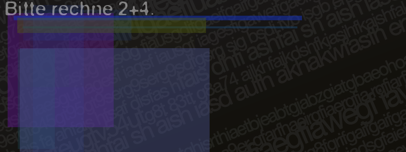 Die Visuelle Bestätigung hilft dabei automatische Spambots und Scripte von den Diensten dieses Forums abzuhalten. Derartige Scripte sind normalerweise nicht in der Lage den untenstehenden Code zu erkennen. Bitte geben Sie also in das untenstehende Feld die Buchstaben und Zahlen ein, die Sie in dem Bild erkennen können oder beantworten Sie die angezeigte Frage.