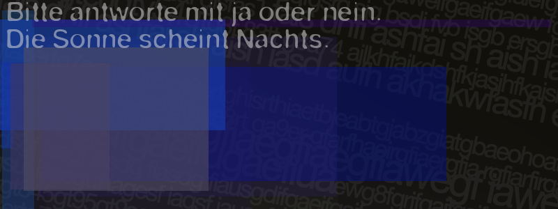Die Visuelle Bestätigung hilft dabei automatische Spambots und Scripte von den Diensten dieses Forums abzuhalten. Derartige Scripte sind normalerweise nicht in der Lage den untenstehenden Code zu erkennen. Bitte geben Sie also in das untenstehende Feld die Buchstaben und Zahlen ein, die Sie in dem Bild erkennen können oder beantworten Sie die angezeigte Frage.