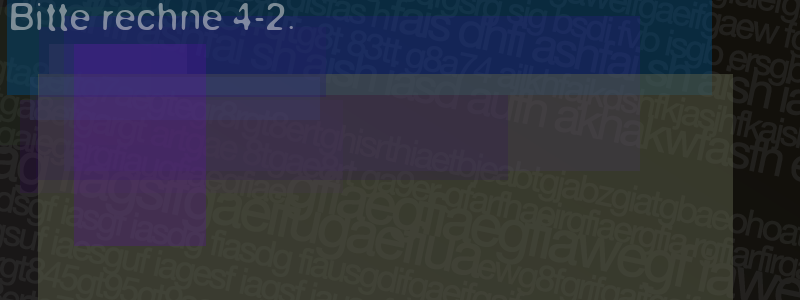 Die Visuelle Bestätigung hilft dabei automatische Spambots und Scripte von den Diensten dieses Forums abzuhalten. Derartige Scripte sind normalerweise nicht in der Lage den untenstehenden Code zu erkennen. Bitte geben Sie also in das untenstehende Feld die Buchstaben und Zahlen ein, die Sie in dem Bild erkennen können oder beantworten Sie die angezeigte Frage.