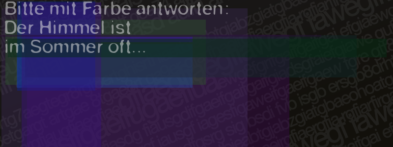 Die Visuelle Bestätigung hilft dabei automatische Spambots und Scripte von den Diensten dieses Forums abzuhalten. Derartige Scripte sind normalerweise nicht in der Lage den untenstehenden Code zu erkennen. Bitte geben Sie also in das untenstehende Feld die Buchstaben und Zahlen ein, die Sie in dem Bild erkennen können oder beantworten Sie die angezeigte Frage.