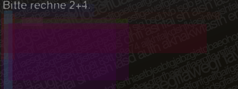 Die Visuelle Bestätigung hilft dabei automatische Spambots und Scripte von den Diensten dieses Forums abzuhalten. Derartige Scripte sind normalerweise nicht in der Lage den untenstehenden Code zu erkennen. Bitte geben Sie also in das untenstehende Feld die Buchstaben und Zahlen ein, die Sie in dem Bild erkennen können oder beantworten Sie die angezeigte Frage.