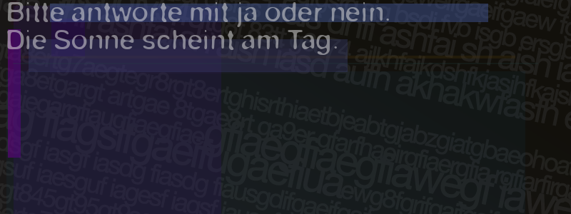 Die Visuelle Bestätigung hilft dabei automatische Spambots und Scripte von den Diensten dieses Forums abzuhalten. Derartige Scripte sind normalerweise nicht in der Lage den untenstehenden Code zu erkennen. Bitte geben Sie also in das untenstehende Feld die Buchstaben und Zahlen ein, die Sie in dem Bild erkennen können oder beantworten Sie die angezeigte Frage.