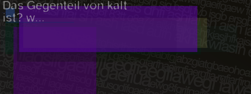 Die Visuelle Bestätigung hilft dabei automatische Spambots und Scripte von den Diensten dieses Forums abzuhalten. Derartige Scripte sind normalerweise nicht in der Lage den untenstehenden Code zu erkennen. Bitte geben Sie also in das untenstehende Feld die Buchstaben und Zahlen ein, die Sie in dem Bild erkennen können oder beantworten Sie die angezeigte Frage.