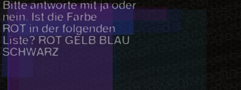 Die Visuelle Bestätigung hilft dabei automatische Spambots und Scripte von den Diensten dieses Forums abzuhalten. Derartige Scripte sind normalerweise nicht in der Lage den untenstehenden Code zu erkennen. Bitte geben Sie also in das untenstehende Feld die Buchstaben und Zahlen ein, die Sie in dem Bild erkennen können oder beantworten Sie die angezeigte Frage.