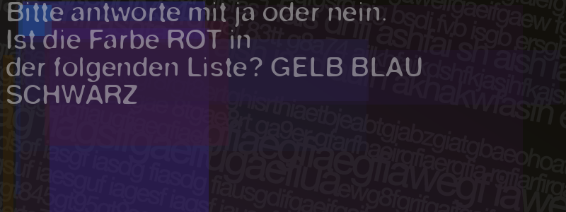 Die Visuelle Bestätigung hilft dabei automatische Spambots und Scripte von den Diensten dieses Forums abzuhalten. Derartige Scripte sind normalerweise nicht in der Lage den untenstehenden Code zu erkennen. Bitte geben Sie also in das untenstehende Feld die Buchstaben und Zahlen ein, die Sie in dem Bild erkennen können oder beantworten Sie die angezeigte Frage.