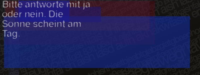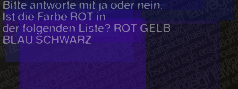 Die Visuelle Bestätigung hilft dabei automatische Spambots und Scripte von den Diensten dieses Forums abzuhalten. Derartige Scripte sind normalerweise nicht in der Lage den untenstehenden Code zu erkennen. Bitte geben Sie also in das untenstehende Feld die Buchstaben und Zahlen ein, die Sie in dem Bild erkennen können oder beantworten Sie die angezeigte Frage.