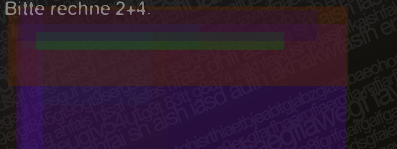 Die Visuelle Bestätigung hilft dabei automatische Spambots und Scripte von den Diensten dieses Forums abzuhalten. Derartige Scripte sind normalerweise nicht in der Lage den untenstehenden Code zu erkennen. Bitte geben Sie also in das untenstehende Feld die Buchstaben und Zahlen ein, die Sie in dem Bild erkennen können oder beantworten Sie die angezeigte Frage.