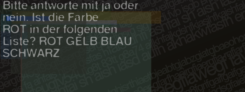 Die Visuelle Bestätigung hilft dabei automatische Spambots und Scripte von den Diensten dieses Forums abzuhalten. Derartige Scripte sind normalerweise nicht in der Lage den untenstehenden Code zu erkennen. Bitte geben Sie also in das untenstehende Feld die Buchstaben und Zahlen ein, die Sie in dem Bild erkennen können oder beantworten Sie die angezeigte Frage.