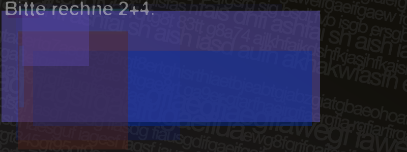 Die Visuelle Bestätigung hilft dabei automatische Spambots und Scripte von den Diensten dieses Forums abzuhalten. Derartige Scripte sind normalerweise nicht in der Lage den untenstehenden Code zu erkennen. Bitte geben Sie also in das untenstehende Feld die Buchstaben und Zahlen ein, die Sie in dem Bild erkennen können oder beantworten Sie die angezeigte Frage.