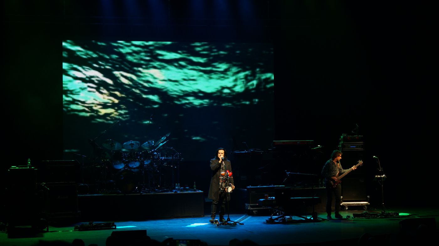 Allein an seinem Keyboard sitzend eröffnete der Maestro mit einem Akustikset das Konzert. Drei von ihm vorgetragene Songs verbreiteten eine leicht andächtige Atmosphäre. Ich bekam eine Ahnung von dem, was ich bei einem vor Jahren von ihm gegebenen Weihnachtskonzert verpasst haben mag. Der Mann hat einfach eine sagenhafte Ausstrahlung und versteht es prächtig, das Publikum schnell in seinen Bann zu ziehen.