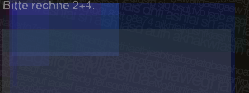 Die Visuelle Bestätigung hilft dabei automatische Spambots und Scripte von den Diensten dieses Forums abzuhalten. Derartige Scripte sind normalerweise nicht in der Lage den untenstehenden Code zu erkennen. Bitte geben Sie also in das untenstehende Feld die Buchstaben und Zahlen ein, die Sie in dem Bild erkennen können oder beantworten Sie die angezeigte Frage.