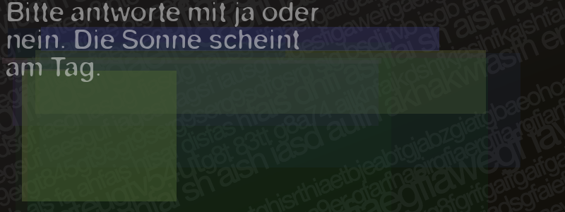 Die Visuelle Bestätigung hilft dabei automatische Spambots und Scripte von den Diensten dieses Forums abzuhalten. Derartige Scripte sind normalerweise nicht in der Lage den untenstehenden Code zu erkennen. Bitte geben Sie also in das untenstehende Feld die Buchstaben und Zahlen ein, die Sie in dem Bild erkennen können oder beantworten Sie die angezeigte Frage.