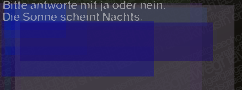 Die Visuelle Bestätigung hilft dabei automatische Spambots und Scripte von den Diensten dieses Forums abzuhalten. Derartige Scripte sind normalerweise nicht in der Lage den untenstehenden Code zu erkennen. Bitte geben Sie also in das untenstehende Feld die Buchstaben und Zahlen ein, die Sie in dem Bild erkennen können oder beantworten Sie die angezeigte Frage.