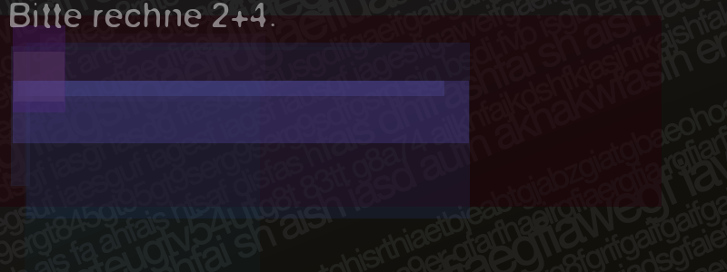 Die Visuelle Bestätigung hilft dabei automatische Spambots und Scripte von den Diensten dieses Forums abzuhalten. Derartige Scripte sind normalerweise nicht in der Lage den untenstehenden Code zu erkennen. Bitte geben Sie also in das untenstehende Feld die Buchstaben und Zahlen ein, die Sie in dem Bild erkennen können oder beantworten Sie die angezeigte Frage.