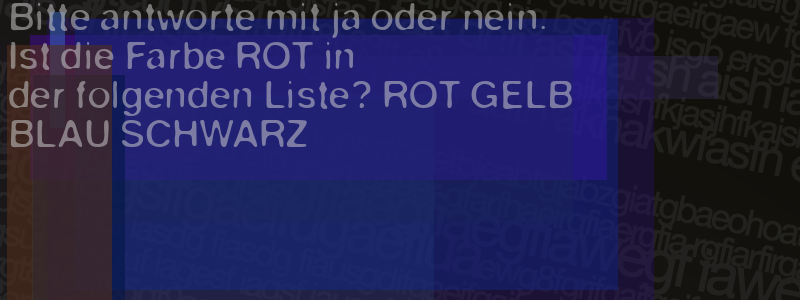 Die Visuelle Bestätigung hilft dabei automatische Spambots und Scripte von den Diensten dieses Forums abzuhalten. Derartige Scripte sind normalerweise nicht in der Lage den untenstehenden Code zu erkennen. Bitte geben Sie also in das untenstehende Feld die Buchstaben und Zahlen ein, die Sie in dem Bild erkennen können oder beantworten Sie die angezeigte Frage.