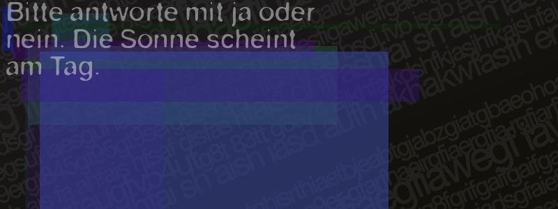 Die Visuelle Bestätigung hilft dabei automatische Spambots und Scripte von den Diensten dieses Forums abzuhalten. Derartige Scripte sind normalerweise nicht in der Lage den untenstehenden Code zu erkennen. Bitte geben Sie also in das untenstehende Feld die Buchstaben und Zahlen ein, die Sie in dem Bild erkennen können oder beantworten Sie die angezeigte Frage.