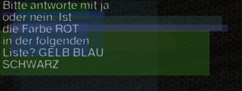 Die Visuelle Bestätigung hilft dabei automatische Spambots und Scripte von den Diensten dieses Forums abzuhalten. Derartige Scripte sind normalerweise nicht in der Lage den untenstehenden Code zu erkennen. Bitte geben Sie also in das untenstehende Feld die Buchstaben und Zahlen ein, die Sie in dem Bild erkennen können oder beantworten Sie die angezeigte Frage.
