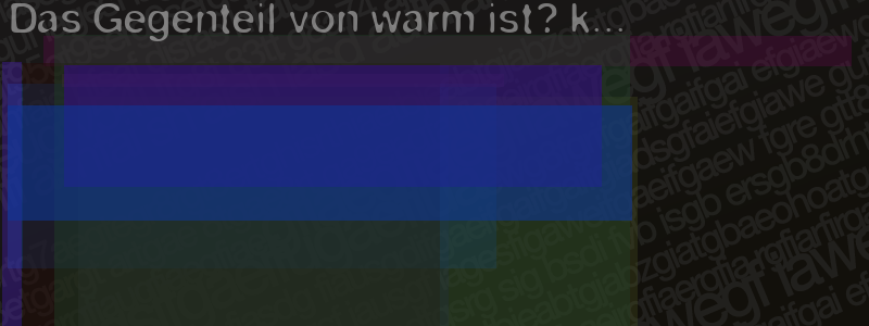 Die Visuelle Bestätigung hilft dabei automatische Spambots und Scripte von den Diensten dieses Forums abzuhalten. Derartige Scripte sind normalerweise nicht in der Lage den untenstehenden Code zu erkennen. Bitte geben Sie also in das untenstehende Feld die Buchstaben und Zahlen ein, die Sie in dem Bild erkennen können oder beantworten Sie die angezeigte Frage.