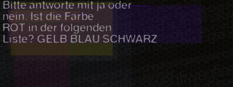 Die Visuelle Bestätigung hilft dabei automatische Spambots und Scripte von den Diensten dieses Forums abzuhalten. Derartige Scripte sind normalerweise nicht in der Lage den untenstehenden Code zu erkennen. Bitte geben Sie also in das untenstehende Feld die Buchstaben und Zahlen ein, die Sie in dem Bild erkennen können oder beantworten Sie die angezeigte Frage.