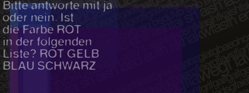 Die Visuelle Bestätigung hilft dabei automatische Spambots und Scripte von den Diensten dieses Forums abzuhalten. Derartige Scripte sind normalerweise nicht in der Lage den untenstehenden Code zu erkennen. Bitte geben Sie also in das untenstehende Feld die Buchstaben und Zahlen ein, die Sie in dem Bild erkennen können oder beantworten Sie die angezeigte Frage.