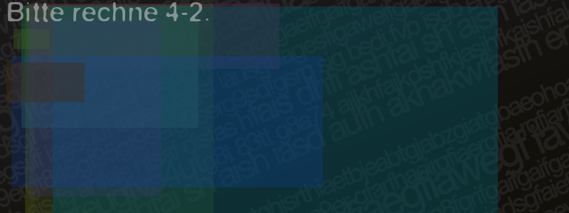Die Visuelle Bestätigung hilft dabei automatische Spambots und Scripte von den Diensten dieses Forums abzuhalten. Derartige Scripte sind normalerweise nicht in der Lage den untenstehenden Code zu erkennen. Bitte geben Sie also in das untenstehende Feld die Buchstaben und Zahlen ein, die Sie in dem Bild erkennen können oder beantworten Sie die angezeigte Frage.