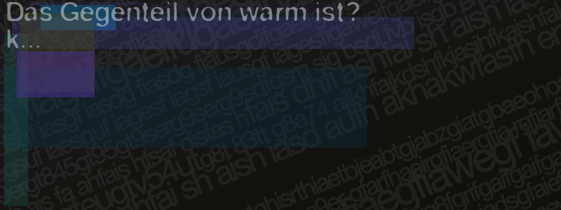 Die Visuelle Bestätigung hilft dabei automatische Spambots und Scripte von den Diensten dieses Forums abzuhalten. Derartige Scripte sind normalerweise nicht in der Lage den untenstehenden Code zu erkennen. Bitte geben Sie also in das untenstehende Feld die Buchstaben und Zahlen ein, die Sie in dem Bild erkennen können oder beantworten Sie die angezeigte Frage.
