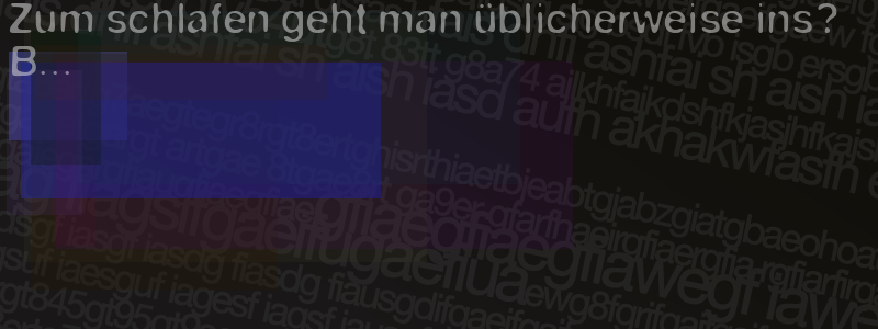 Die Visuelle Bestätigung hilft dabei automatische Spambots und Scripte von den Diensten dieses Forums abzuhalten. Derartige Scripte sind normalerweise nicht in der Lage den untenstehenden Code zu erkennen. Bitte geben Sie also in das untenstehende Feld die Buchstaben und Zahlen ein, die Sie in dem Bild erkennen können oder beantworten Sie die angezeigte Frage.