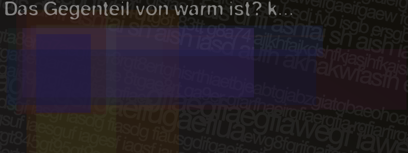 Die Visuelle Bestätigung hilft dabei automatische Spambots und Scripte von den Diensten dieses Forums abzuhalten. Derartige Scripte sind normalerweise nicht in der Lage den untenstehenden Code zu erkennen. Bitte geben Sie also in das untenstehende Feld die Buchstaben und Zahlen ein, die Sie in dem Bild erkennen können oder beantworten Sie die angezeigte Frage.