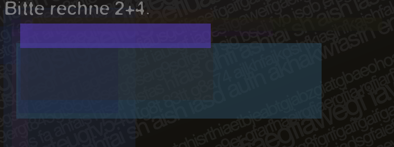 Die Visuelle Bestätigung hilft dabei automatische Spambots und Scripte von den Diensten dieses Forums abzuhalten. Derartige Scripte sind normalerweise nicht in der Lage den untenstehenden Code zu erkennen. Bitte geben Sie also in das untenstehende Feld die Buchstaben und Zahlen ein, die Sie in dem Bild erkennen können oder beantworten Sie die angezeigte Frage.