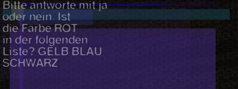 Die Visuelle Bestätigung hilft dabei automatische Spambots und Scripte von den Diensten dieses Forums abzuhalten. Derartige Scripte sind normalerweise nicht in der Lage den untenstehenden Code zu erkennen. Bitte geben Sie also in das untenstehende Feld die Buchstaben und Zahlen ein, die Sie in dem Bild erkennen können oder beantworten Sie die angezeigte Frage.