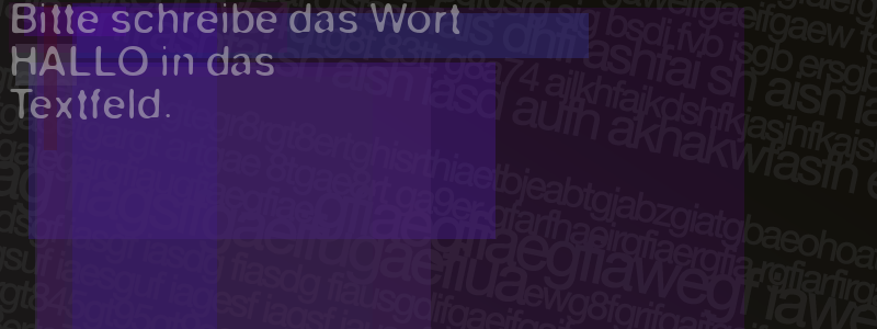 Die Visuelle Bestätigung hilft dabei automatische Spambots und Scripte von den Diensten dieses Forums abzuhalten. Derartige Scripte sind normalerweise nicht in der Lage den untenstehenden Code zu erkennen. Bitte geben Sie also in das untenstehende Feld die Buchstaben und Zahlen ein, die Sie in dem Bild erkennen können oder beantworten Sie die angezeigte Frage.