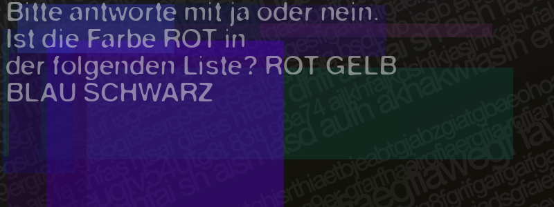 Die Visuelle Bestätigung hilft dabei automatische Spambots und Scripte von den Diensten dieses Forums abzuhalten. Derartige Scripte sind normalerweise nicht in der Lage den untenstehenden Code zu erkennen. Bitte geben Sie also in das untenstehende Feld die Buchstaben und Zahlen ein, die Sie in dem Bild erkennen können oder beantworten Sie die angezeigte Frage.