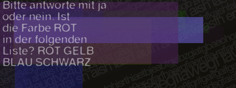 Die Visuelle Bestätigung hilft dabei automatische Spambots und Scripte von den Diensten dieses Forums abzuhalten. Derartige Scripte sind normalerweise nicht in der Lage den untenstehenden Code zu erkennen. Bitte geben Sie also in das untenstehende Feld die Buchstaben und Zahlen ein, die Sie in dem Bild erkennen können oder beantworten Sie die angezeigte Frage.