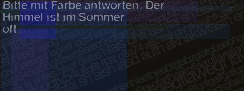 Die Visuelle Bestätigung hilft dabei automatische Spambots und Scripte von den Diensten dieses Forums abzuhalten. Derartige Scripte sind normalerweise nicht in der Lage den untenstehenden Code zu erkennen. Bitte geben Sie also in das untenstehende Feld die Buchstaben und Zahlen ein, die Sie in dem Bild erkennen können oder beantworten Sie die angezeigte Frage.