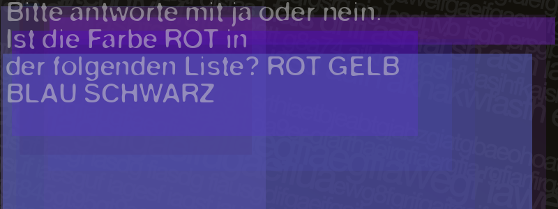 Die Visuelle Bestätigung hilft dabei automatische Spambots und Scripte von den Diensten dieses Forums abzuhalten. Derartige Scripte sind normalerweise nicht in der Lage den untenstehenden Code zu erkennen. Bitte geben Sie also in das untenstehende Feld die Buchstaben und Zahlen ein, die Sie in dem Bild erkennen können oder beantworten Sie die angezeigte Frage.