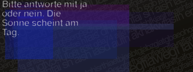 Die Visuelle Bestätigung hilft dabei automatische Spambots und Scripte von den Diensten dieses Forums abzuhalten. Derartige Scripte sind normalerweise nicht in der Lage den untenstehenden Code zu erkennen. Bitte geben Sie also in das untenstehende Feld die Buchstaben und Zahlen ein, die Sie in dem Bild erkennen können oder beantworten Sie die angezeigte Frage.