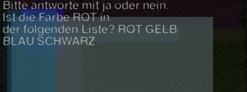 Die Visuelle Bestätigung hilft dabei automatische Spambots und Scripte von den Diensten dieses Forums abzuhalten. Derartige Scripte sind normalerweise nicht in der Lage den untenstehenden Code zu erkennen. Bitte geben Sie also in das untenstehende Feld die Buchstaben und Zahlen ein, die Sie in dem Bild erkennen können oder beantworten Sie die angezeigte Frage.