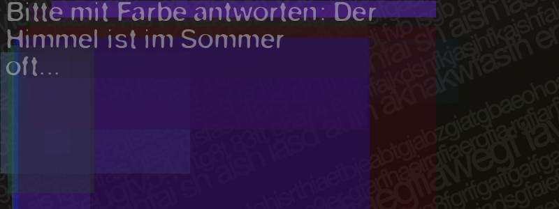 Die Visuelle Bestätigung hilft dabei automatische Spambots und Scripte von den Diensten dieses Forums abzuhalten. Derartige Scripte sind normalerweise nicht in der Lage den untenstehenden Code zu erkennen. Bitte geben Sie also in das untenstehende Feld die Buchstaben und Zahlen ein, die Sie in dem Bild erkennen können oder beantworten Sie die angezeigte Frage.