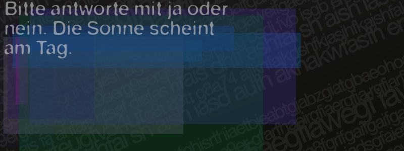 Die Visuelle Bestätigung hilft dabei automatische Spambots und Scripte von den Diensten dieses Forums abzuhalten. Derartige Scripte sind normalerweise nicht in der Lage den untenstehenden Code zu erkennen. Bitte geben Sie also in das untenstehende Feld die Buchstaben und Zahlen ein, die Sie in dem Bild erkennen können oder beantworten Sie die angezeigte Frage.