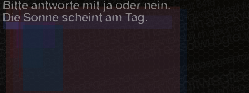 Die Visuelle Bestätigung hilft dabei automatische Spambots und Scripte von den Diensten dieses Forums abzuhalten. Derartige Scripte sind normalerweise nicht in der Lage den untenstehenden Code zu erkennen. Bitte geben Sie also in das untenstehende Feld die Buchstaben und Zahlen ein, die Sie in dem Bild erkennen können oder beantworten Sie die angezeigte Frage.