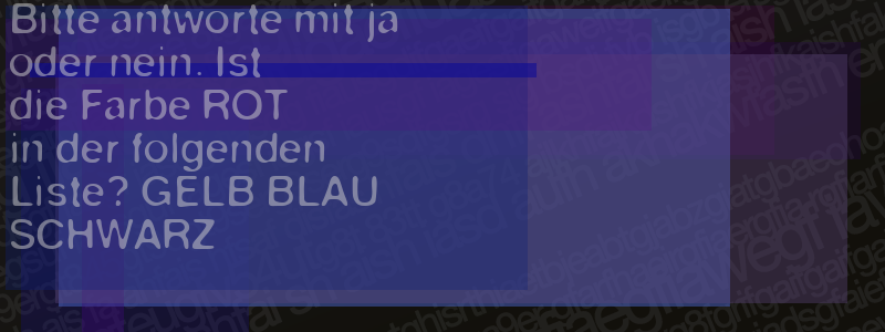 Die Visuelle Bestätigung hilft dabei automatische Spambots und Scripte von den Diensten dieses Forums abzuhalten. Derartige Scripte sind normalerweise nicht in der Lage den untenstehenden Code zu erkennen. Bitte geben Sie also in das untenstehende Feld die Buchstaben und Zahlen ein, die Sie in dem Bild erkennen können oder beantworten Sie die angezeigte Frage.
