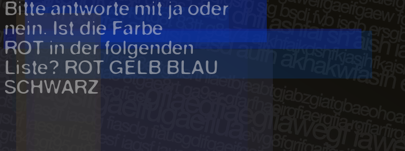 Die Visuelle Bestätigung hilft dabei automatische Spambots und Scripte von den Diensten dieses Forums abzuhalten. Derartige Scripte sind normalerweise nicht in der Lage den untenstehenden Code zu erkennen. Bitte geben Sie also in das untenstehende Feld die Buchstaben und Zahlen ein, die Sie in dem Bild erkennen können oder beantworten Sie die angezeigte Frage.