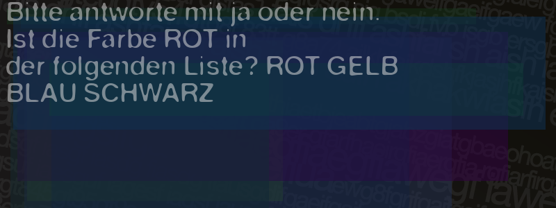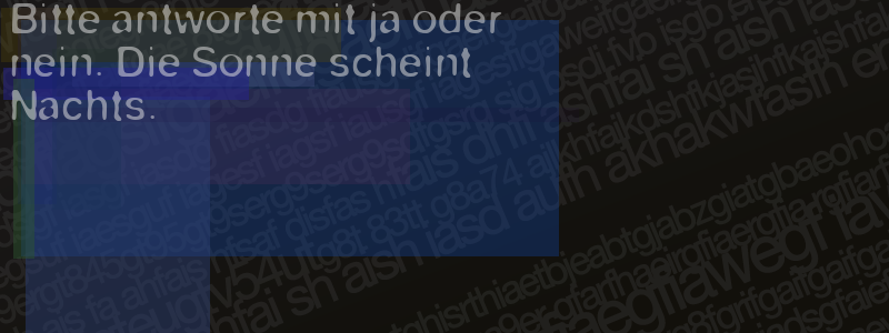 Die Visuelle Bestätigung hilft dabei automatische Spambots und Scripte von den Diensten dieses Forums abzuhalten. Derartige Scripte sind normalerweise nicht in der Lage den untenstehenden Code zu erkennen. Bitte geben Sie also in das untenstehende Feld die Buchstaben und Zahlen ein, die Sie in dem Bild erkennen können oder beantworten Sie die angezeigte Frage.