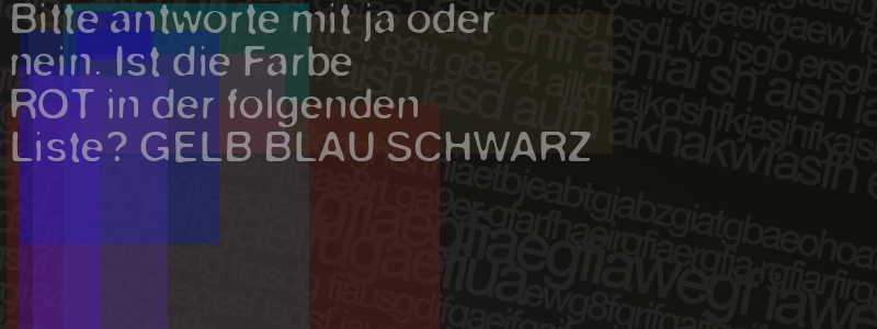 Die Visuelle Bestätigung hilft dabei automatische Spambots und Scripte von den Diensten dieses Forums abzuhalten. Derartige Scripte sind normalerweise nicht in der Lage den untenstehenden Code zu erkennen. Bitte geben Sie also in das untenstehende Feld die Buchstaben und Zahlen ein, die Sie in dem Bild erkennen können oder beantworten Sie die angezeigte Frage.