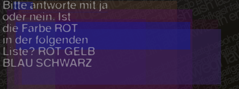 Die Visuelle Bestätigung hilft dabei automatische Spambots und Scripte von den Diensten dieses Forums abzuhalten. Derartige Scripte sind normalerweise nicht in der Lage den untenstehenden Code zu erkennen. Bitte geben Sie also in das untenstehende Feld die Buchstaben und Zahlen ein, die Sie in dem Bild erkennen können oder beantworten Sie die angezeigte Frage.