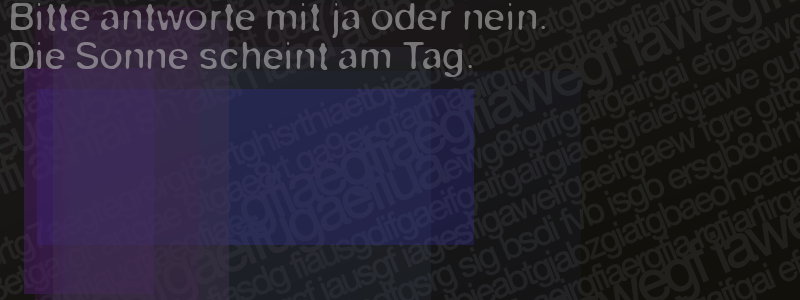 Die Visuelle Bestätigung hilft dabei automatische Spambots und Scripte von den Diensten dieses Forums abzuhalten. Derartige Scripte sind normalerweise nicht in der Lage den untenstehenden Code zu erkennen. Bitte geben Sie also in das untenstehende Feld die Buchstaben und Zahlen ein, die Sie in dem Bild erkennen können oder beantworten Sie die angezeigte Frage.