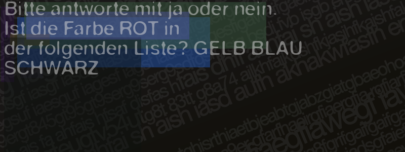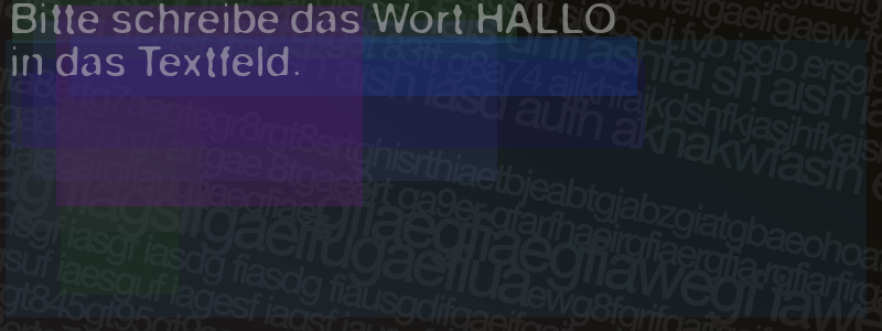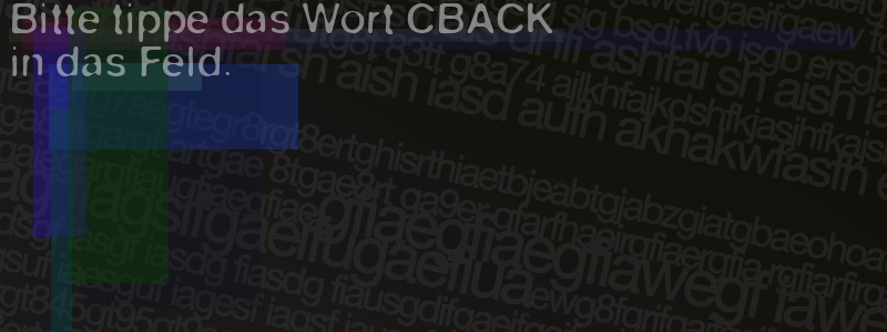 Die Visuelle Bestätigung hilft dabei automatische Spambots und Scripte von den Diensten dieses Forums abzuhalten. Derartige Scripte sind normalerweise nicht in der Lage den untenstehenden Code zu erkennen. Bitte geben Sie also in das untenstehende Feld die Buchstaben und Zahlen ein, die Sie in dem Bild erkennen können oder beantworten Sie die angezeigte Frage.