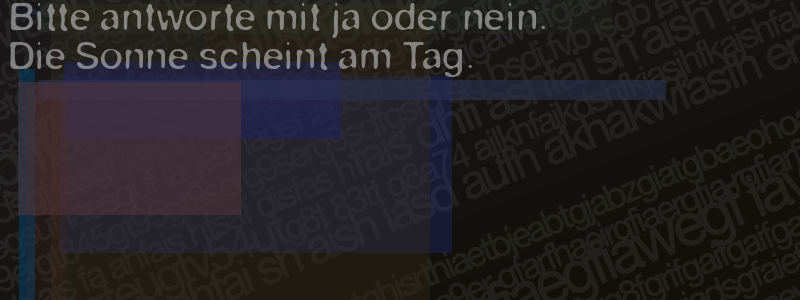 Die Visuelle Bestätigung hilft dabei automatische Spambots und Scripte von den Diensten dieses Forums abzuhalten. Derartige Scripte sind normalerweise nicht in der Lage den untenstehenden Code zu erkennen. Bitte geben Sie also in das untenstehende Feld die Buchstaben und Zahlen ein, die Sie in dem Bild erkennen können oder beantworten Sie die angezeigte Frage.