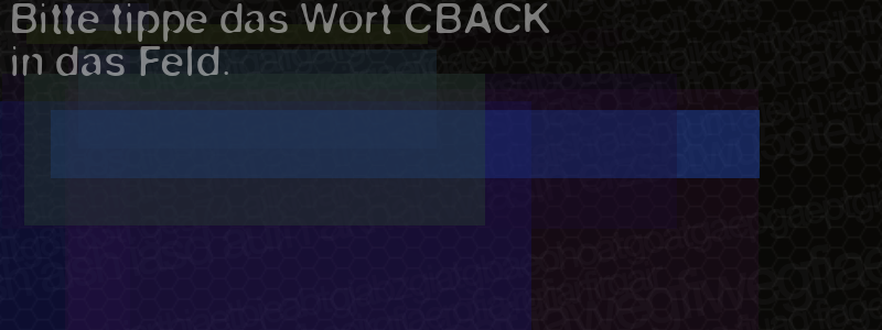 Die Visuelle Bestätigung hilft dabei automatische Spambots und Scripte von den Diensten dieses Forums abzuhalten. Derartige Scripte sind normalerweise nicht in der Lage den untenstehenden Code zu erkennen. Bitte geben Sie also in das untenstehende Feld die Buchstaben und Zahlen ein, die Sie in dem Bild erkennen können oder beantworten Sie die angezeigte Frage.