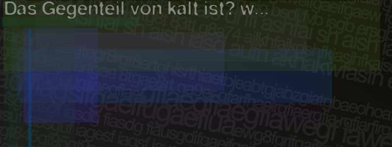 Die Visuelle Bestätigung hilft dabei automatische Spambots und Scripte von den Diensten dieses Forums abzuhalten. Derartige Scripte sind normalerweise nicht in der Lage den untenstehenden Code zu erkennen. Bitte geben Sie also in das untenstehende Feld die Buchstaben und Zahlen ein, die Sie in dem Bild erkennen können oder beantworten Sie die angezeigte Frage.
